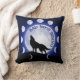 Werewolf Moon Phase Bad Moon Scatter cojín. Este cojín de la fase lunar con temática Werewolf muestra un lobo aullante sobre un acantilado que se lanza a la luna llena y a su alrededor 12 fases de luna, con el título 'Mal levantamiento de la luna'. Esta almohada de werewolf es un gran regalo para los fanáticos de películas de werewolf y los fanáticos de películas de terror, o para cualquiera que ame los lobos.