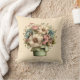 Pillow with a cute image. Blue. pink and cream colored flowers with green leaves. Set inside a green flower pot with a green plaid cloth hanging over the side.