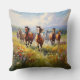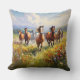 A beautiful pillow for cowboy decor and western art lovers, a gorgeous painting of wild horses running in a grassy field of wildflowers.