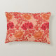 almohada acentuada en un William Morris vintage, Art Nouveau, estampado floral de crisantemos estilizados, realzada digitalmente y coloreada, en tonos naranjas de coral, mandarina profunda y naranja suave, sobre un fondo pastel de naranja/albaricoque