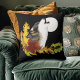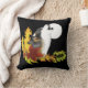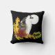 Lobo aullando en luna llena con hojas y bellotas de otoño contra un fondo negro