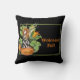 Bienvenidos a la temporada de otoño con esta fantástica almohada de tiro con acuarela ilustrada elf de cosecha de bosques / ninfa encaramada en grandes calabazas sobre fondo negro con texto naranja de personalizable