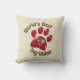 Esta almohada de apreciación del caminante del perro presenta una huella de pata roja con corazones en el centro con el "Mejor Caminador del Perro del Mundo" curvado alrededor de la huella del cachorro. El texto se puede personalizar fácilmente si se desea. Diseño original - C. McGouldrick
