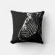 Eleva tu decoración con esta minimalista pero impactante almohada de cebra. Las audaces rayas blancas y negras contrastan maravillosamente con el fondo negro, creando una elegante y elegante pieza de declaración.