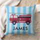 Añade tu nombre a este encantador cojín del motor de bomberos para el bombero en ciernes