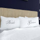 Una fuente romántica y ondulada se utiliza en este par de fundas de almohada para la noche de bodas. Puede cambiar el texto a los nombres de la novia y el novio para que sepan qué lado de la cama les pertenece.