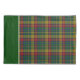 Elegante funda de almohada recubierta de color rojo, verde, amarillo clan bucano Tartán. Un hem verde y blanco, al final del funda, tiene texto personalizado blanco, en la parte delantera de la almohada. Personalice el texto para leer lo que desee.