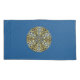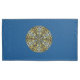 Una mandala de color azul oscuro con estrellas azules y doradas brillantes y un círculo de gradientes de rayos solares brillantes detrás hace que sea divertida y de diseño que recuerda un cielo nocturno y un día soleado con una imagen.