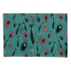 Fun y caprichoso patrón de gatos atómicos modernos de mediados del siglo sobre un fondo verde azulado. Este patrón que muestra gatos negros de estilo moderno de mediados de siglo con formas atómicas evoca un estilo vintage de los años 50 y 60. Perfecto accesorio de decoración casera para la casa moderna de mediados de siglo o regalo para los amantes del estilo retro de la era de mediados de siglo.
