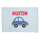 Funda de almohada personalizada del sitio de los muchachos con el coche del juguete. Caja linda de la almohada para el dormitorio del niño con el vehículo auto azul. Decoración casera para el sitio de niños. Diseño de moda del ilustracion para las ideas del hijo, del nieto, del sobrino, del cumpleaños del nieto etc. y del regalo de vacaciones para los niños.