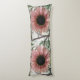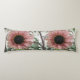 Esta impresionante almohada corporal presenta una hermosa fotografía de un girasol rosa pálido. El girasol es de color rosa natural y los pétalos tienen un anillo exterior rosa pálido y un anillo interior rosado más oscuro. El medio donde están las semillas es negro. Esta fotografía fue tomada en un jardín.