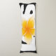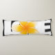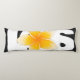 Black and white body pillow with a yellow Frangipani blossom in the center.