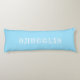 "Huevas" Letras blancas azules claras de color azul claro Almohada corporal