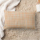 "A rectangular pillow displayed against a plain backdrop, shown in two views. It features a small orange and white plaid pattern, conveying a cozy and simple aesthetic."