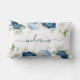 Cojín Lumbar Acuarela Dusty Blue Floral Elegante Monograma