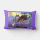 Bajo un cielo dorado, rodeado de flores violetas, un gatito alienígena de seis patas, con piedras preciosas, se relaja junto a una piscina de lirios. Regalo humorístico para todas las edades