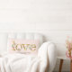 Las características de la almohada personalizada letras de arte de palabra en un tono dorado con flores blancas y rosadas combinadas con sus nombres y fecha de la boda. Elegante para usar en su recepción de boda o como regalo de boda o ducha de novia para una pareja especial. Derechos de autor, Audrey Jeanne Roberts.