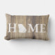 Almohada lumbar elegante rústica que ofrece un fondo de madera ligero de los tablones con la palabra "CASERA" y el "O" que es una silueta del estado de Georgia. La parte trasera tiene su apellido en el texto blanco.