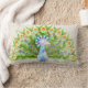 Esta colorida almohada lumbar presenta acuarelas de pavo real.