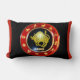 Esta almohada lumbar muestra la rueda de zodiaco Taurus con signos celestes principales y otros alrededor de la rueda con un estilo y tema rojo y dorado sobre el panel frontal y posterior con tela de tejido suave sin arrugas y un cierre de cremallera oculto que incluye un inserto sintético. Todas las almohadas están hechas de poliéster 100% con impresión doble cara de sublimación de alta calidad.