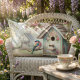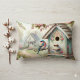 Cojín Lumbar Aves De Primavera Con Flores Pastel Y Ave