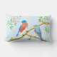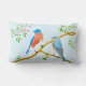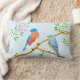 En una rama delgada debajo de flores rosadas de primavera, dos pájaros azules se sientan muy juntos. El pájaro macho es llamativo y vívido, sus plumas ricas en color: plumaje vibrante y azul profundo en la cabeza, espalda, alas y cola, contrastado por un rico color castaño o rojo ladrillo en la garganta y el pecho. Su vientre es blanco.