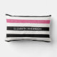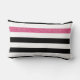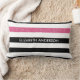 Personalice esta moderna almohada horizontal de rayas blancas y negras con un patrón lumbar con una franja como un purpurina rosado caliente añadiendo el nombre de cualquier muchacha. Esta estampada de rayas gráficas de moda es perfecta para la moda de moda. Imagen plana impresa, NO purpurina real.