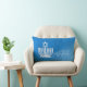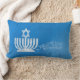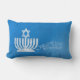 almohada lumbar de 21" x 13" con una imagen de una menorah azul pálido y blanca coronada con una Estrella de David en grunge azul. Grunge azul hacia atrás. Vea la almohada de acento de 12" x 16" correspondiente. Vea toda la colección de Hanukkah Pillow en la categoría HOME en la sección HOLIDAYS.