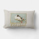 Almohada con la palabra "Bendito" y una encantadora pintura cosada de dos pájaros amorosos sentados en una extremidad en la nieve. Perfecto para Navidades o todo el invierno.