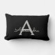 Cojín Lumbar Black Silver Modern Script Girly Monograma Nombre