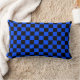A blue and black checkerboard pattern fills the image, creating a uniform, alternating grid of squares, conveying a bold and geometric feel.