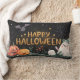 Cojín Lumbar calabaza de halloween feliz con acuarela y fantasm