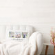 Almohada con 3 fotos cuadradas dispuestas lado a lado en el frente y en la parte trasera, haciendo un total de 6 fotos que puedes reemplazar con tus propias fotos sobre un fondo blanco. También puedes agregar tu apellido en una fuente de caligrafía elegante y el año de establecimiento. Perfecto para decorar el hogar, recién casados, recuerdos familiares, etc.