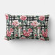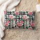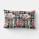 Cojín Lumbar Camelias Rosadas Sobre Rayas De Tinta Blanco Y Neg