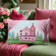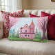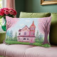 Cojín Lumbar Casa rosa victoriana y flores de cerezo
