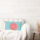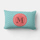 Cojín Lumbar Chevron verde azulado y coralino con el monograma