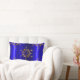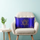 Una almohada de bonito, Navidades festivos con un toque dorado de copos de nieve sobre un colorido fondo azul real para añadir un toque especial de diseño a tu casa para las vacaciones.