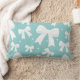Cojín Lumbar Coqueta Azul con Perlas y Lazos Blancos