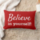 Esta almohada lumbar roja audaz presenta la cita motivacional "¡Cree en ti mismo!" en tipografía blanca limpia para un aspecto brillante y edificante. El diseño simple y moderno añade un toque alegre de color a cualquier habitación y sirve como un recordatorio diario de aliento.