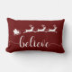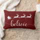 Cree en la magia de la temporada. Esta almohada roja reversible presenta una simple silueta blanca de Santa y su reno tirando de la manga por encima de la palabra "Believe" en una fuente decorativa. Disponible en otras opciones de color. ¡Gracias por su interés en SapphireDesigns!
