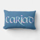 Cojín Lumbar Diseño floral del texto Galés Cariad en azules