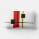 Diseño geométrico abstracto de arte moderno con líneas negras, rojas, amarillas y cuadrados negros sobre fondo blanco