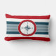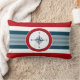 Diseño náutico con decoración de brújula en forma redonda sobre fondo rayado azul, rojo y blanco