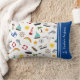 ¡Dale a tu pequeño capitán su propia almohada lumbar con temática marinera! Pillow muestra el nombre de su hijo antes del título de Capitán (o el título de su elección). En la parte superior hay un patrón de imágenes relacionadas con el marinero: veleros, marineros, arcos de lluvia, soles, faros, delfines, ballenas y más. A cualquier joven aficionado a la vela le encantará esta adorable almohada de temática oceánica.