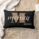 Elegant Monogram Black Gold Script Lumbar Pillow
