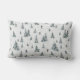 Esta almohada rectangular de tiro tiene a los esquiadores de descenso que navegan por las pistas arboladas, con yetis esquivos escondiéndose y osando por toda la escena.