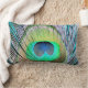 Cojín Lumbar Feather de pavo real sobre turquesa