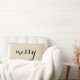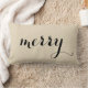 Cojín Lumbar Feliz Navidad Holly Black Script Beige Holiday