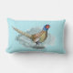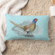 Dibujo de un faisán macho con lápiz de color. Se ve el hermoso pájaro coloreado desde un lado para que se vea su hermosa cola larga. Detrás del pájaro también hay una mancha de acuarela para que el efecto sea divertido.