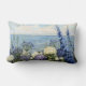 Una suave pintura floral costera en pastos claros, con flores moradas, azules y blancas con una delicada vegetación y una tranquila vista al mar a lo lejos, perfecta para casas de estilo costero o de cabaña.
